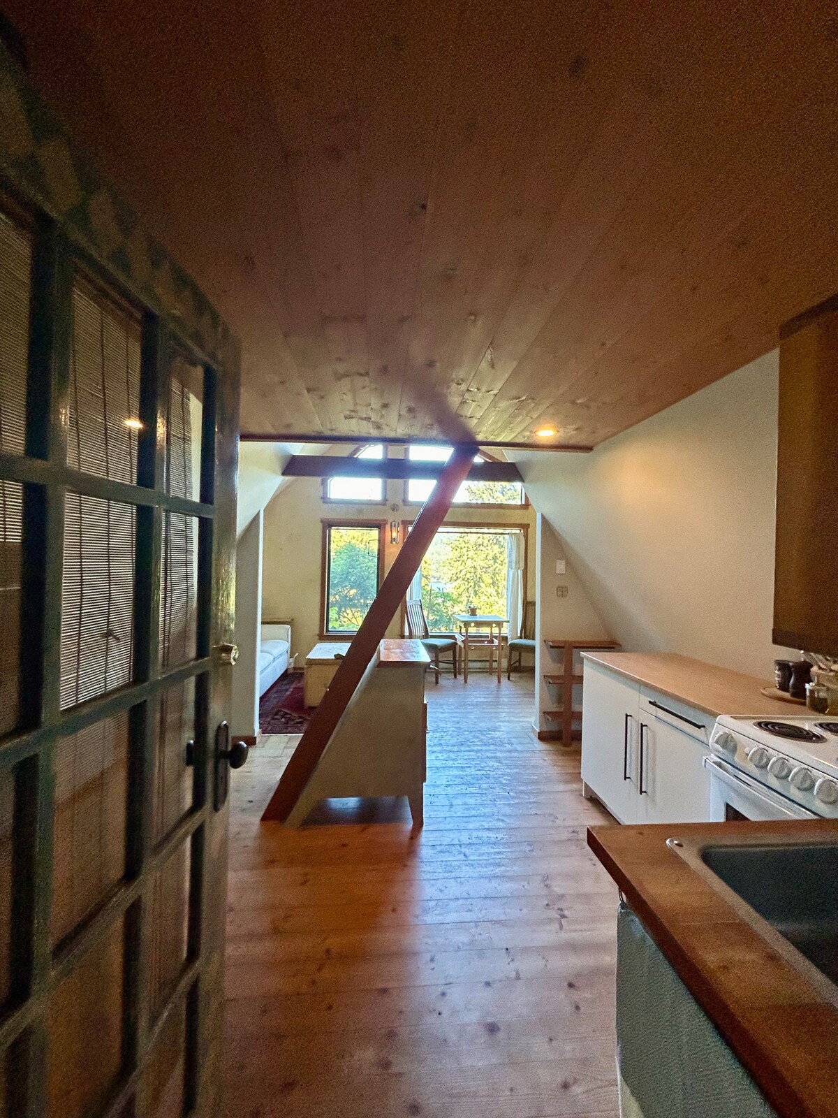 Soddisfa il bisogno di una pausa in questa casa costruita sulla terra, unica nel suo genere. L'accogliente rifugio è stato scolpito a mano utilizzando materiali naturali locali e sostenibili e dispone di uno spazio abitativo centrale con scale a sbalzo che conducono alla camera da letto mansardata. Gli ospiti hanno accesso all'intera casa e alla proprietà circostante. Viviamo nella casa vicina e siamo lieti di darti consigli o rispondere a domande per aiutarti a sfruttare al massimo il tuo soggiorno. Il quartiere è abbastanza rurale e per lo più agricolo, con diverse fattorie e un piccolo vigneto privato. La casa si trova a 10 minuti a piedi dalla spiaggia e a 20 minuti a piedi da un negozio di alimentari e gastronomia a conduzione familiare, specializzato in prodotti biologici locali. Mayne Island dispone di un piccolo autobus pubblico. Gli orari e i percorsi sono limitati, in particolare in inverno. Si ferma sul vialetto. Abbiamo anche un sistema ufficiale di autostop escursionistico con piazzole per le auto contrassegnate da cartelli, dove puoi aspettare un passaggio. Di solito non devi attendere a lungo. Saremo felici di offrire il servizio di trasferimento da e per il molo dei traghetti come cortesia, per incoraggiare i viaggiatori a non usare l'auto, nei giorni in cui l'autobus pubblico non è attivo. Facci sapere in anticipo se verrai senza il tuo mezzo di trasporto e faremo in modo che noi o l'autobus pubblico (che ti accompagnerà al nostro vialetto) siamo lì per te all'arrivo del traghetto. I terminal BC Ferries vicino a Victoria e Vancouver sono facilmente raggiungibili con i mezzi pubblici dai rispettivi aeroporti e centri cittadini.
