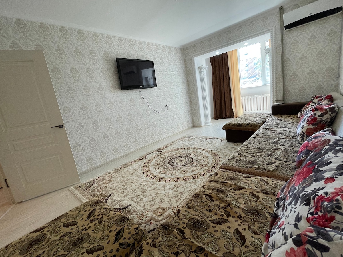 Остановитесь с семьей в самом центре. В шаговой доступности спорт комплекс, бассейн, крытый ледовый каток, супер -, алко-, бургер- маркеты, набережная для прогулок близ р. СЫРДАРИЯ. Через 3 остановки аквапарк и ночные клубы. Сопровождение по городу (по желанию).