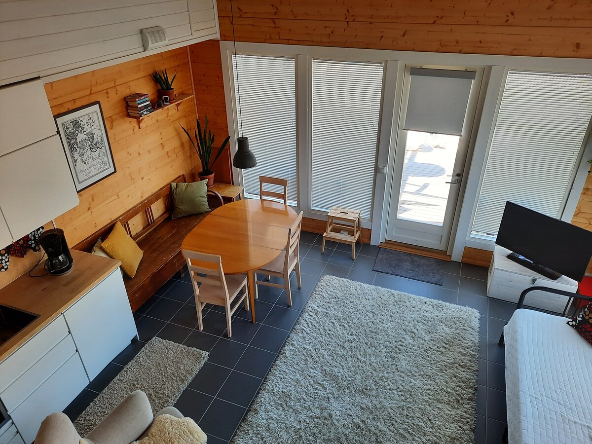 Ti diamo il benvenuto in un ampio e accogliente appartamento su due livelli a Kettula Bay, Kuopio! L'appartamento ha il suo ingresso e il check-in flessibile grazie alla cassetta portachiavi. La camera da letto ha un letto matrimoniale largo 160 cm con materasso Tempur di alta qualità, e il soggiorno ha un divano letto e due letti singoli separati: c'è spazio sufficiente per un gruppo più grande. Una pompa di calore ad aria che fornisce raffreddamento per un maggiore comfort abitativo. C'è un posto auto gratuito nel cortile e gli animali domestici sono i benvenuti.