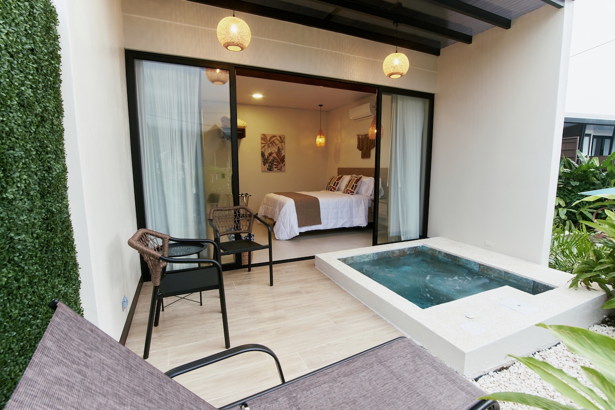 Rifugiati nel tuo rifugio tropicale nel cuore di La Fortuna! 🌋 🌴✨ Questa elegante villa offre un letto king size, una vasca idromassaggio, una doccia privata all'aperto e una lussureggiante terrazza nella foresta pluviale solo per te. Resta connesso con il wifi ultraveloce, rilassati con una smart TV da 55" e goditi il massimo comfort con aria condizionata, acqua calda, cucina e parcheggio privato. Progettato per coppie o avventurieri in cerca di lusso, privacy e un legame indimenticabile con la natura.