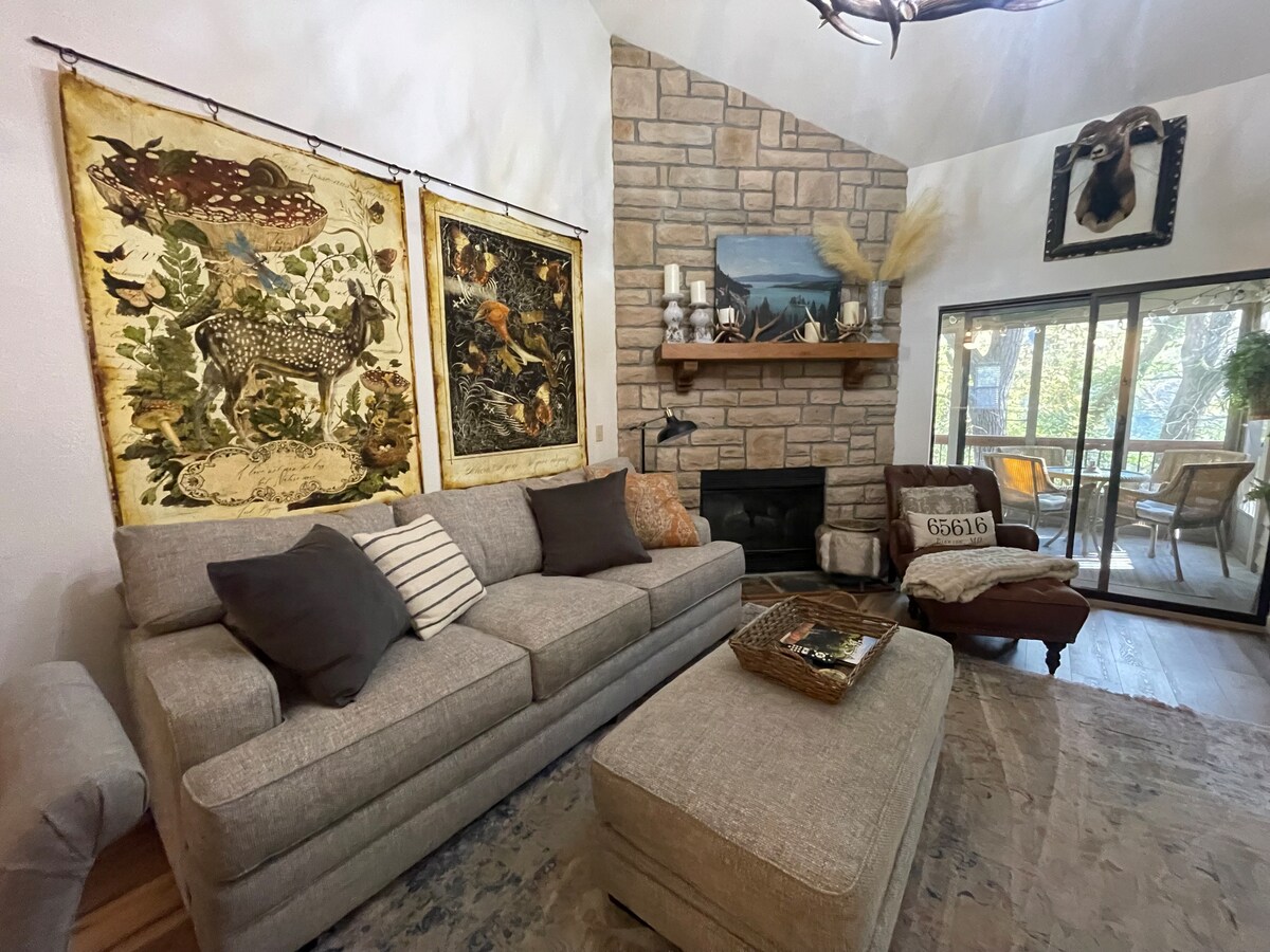Ti diamo il benvenuto al Black Bear Cabin! Situato nella splendida comunità recintata di Stonebridge Village, si trova su uno dei migliori campi da golf della zona di Branson. Questo chalet tranquillo e accogliente offre 1 grande camera da letto principale con bagno privato e un ulteriore posto letto fornito da un divano letto. Ti piacerà sederti davanti al caminetto elettrico o sulla terrazza schermata e goderti l'ambiente tranquillo. Tutti i servizi sono a disposizione degli ospiti, tra cui piscine, country club, campi da ballo e molto altro!