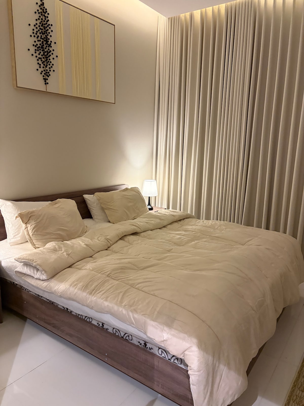 Rilassati in questa dimora tranquilla. L'appartamento si trova al primo piano di un edificio residenziale privato e dispone di tre camere da letto, una cucina completamente attrezzata e un ampio soggiorno. Avrai accesso a molte attrazioni turistiche e centri commerciali. L'aeroporto è a dieci minuti di auto. Il centro commerciale Al Raki si trova a 100 metri di distanza e nelle vicinanze sono disponibili ristoranti e negozi.