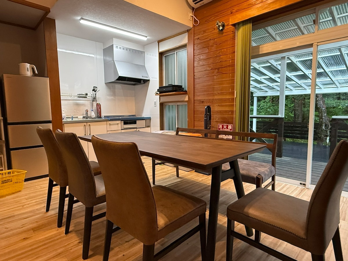 "MANA" è un'elegante casa in legno circondata dalla foresta di Nasu e da un ruscello che può ospitare fino a 15 persone Svegliati con il suono dei ruscelli limpidi e del cinguettio degli uccelli e, la sera, dopo aver guardato il cielo stellato nella sauna a botte nella foresta, puoi addormentarti.La terrazza in legno, la sauna a botte, la sedia reclinabile Totonou e l'autentica grande griglia per barbecue sono tutti disponibili per uso privato! Ti aiuteremo con informazioni sulle attrazioni turistiche e sui ristoranti di Nasu.È stato introdotto il wifi a 10 Gbps.Inglese disponibile Lavorazioni dove puoi goderti una sauna e un barbecue tra loro, glamping per coppie e familiari, snowboard con gli amici, sci, gite golf, campi di allenamento aziendali e altro ancora! Piano cottura IH, frigorifero, macchina per caffè espresso e tutti i piatti e gli utensili da cucina.È inoltre completamente attrezzato con lavastoviglie, lavatrice e asciugatrice. Si trova a 3 minuti a piedi da Kan-chan Onsen, che offre il miglior bagno all'aperto dopo la sauna.Anche Penny Rain, la panetteria più famosa di Nasu, è raggiungibile a piedi.Acquista croissant e fai una colazione elegante con caffè preparato con chicchi.Safari Park e le famose sorgenti termali sono raggiungibili in 10 minuti di auto.