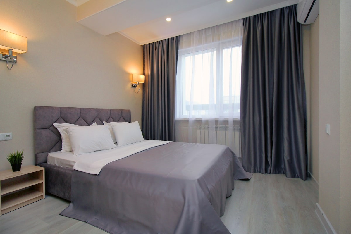 A 2 passi dalla stazione della metropolitana Alatau. Senza traffico, è comodo raggiungere le principali località, compreso il centro storico. E dopo le passeggiate, ti aspettano 64 mq di comfort, pulizia e piacere estetico con una lussuosa vista panoramica. Il luogo ideale ad Almaty per ammirare le montagne e andare a conquistarle. L'area relax con poltrona sospesa ti aiuterà a rilassarti dopo il viaggio. Area di lavoro con vista a volo d'uccello sulla città. Internet fino a 500 Mbps Camera da letto separata con letto comodo e prese elettriche nelle vicinanze :)