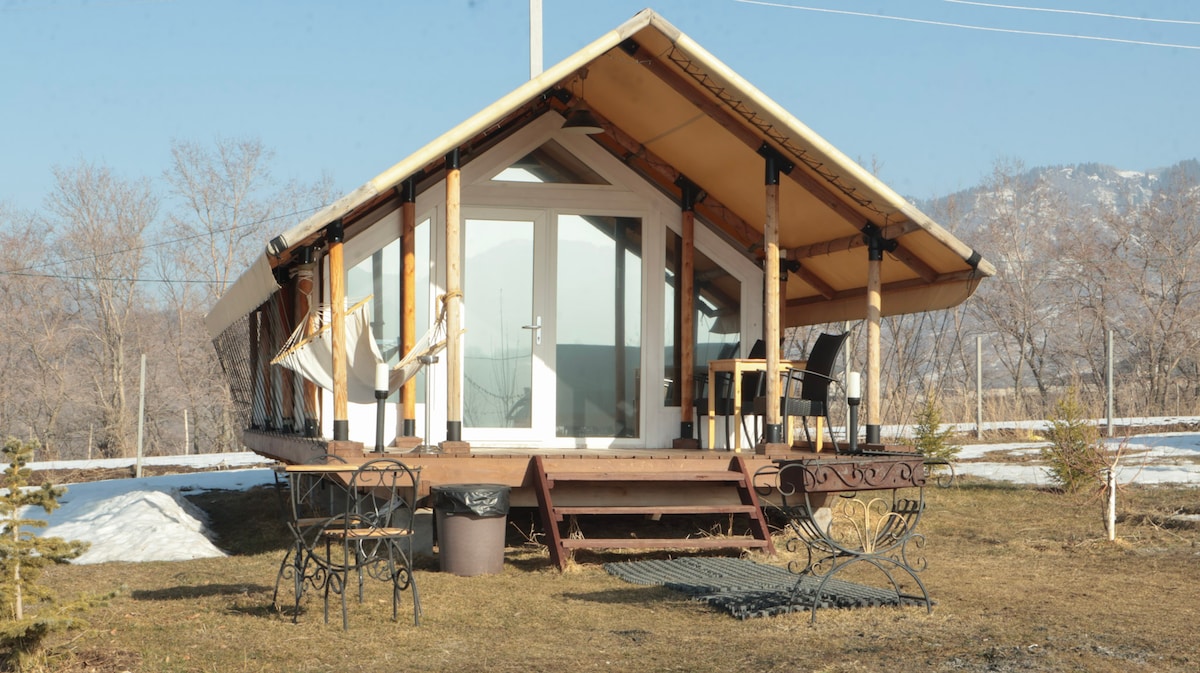 Reconnect with nature at this unforgettable escape. Our tiny glamping site is based on the idea of slow living where everything is balanced and harmonic. We are located on the foothill of Almaty mountains just at the entrance of the small national park, so you can easily go hiking from our place. The magic atmosphere is also added by our cozy lounge zone with fire pit and open air cinema that is charge free for all our guests to make the stay even more memorable.