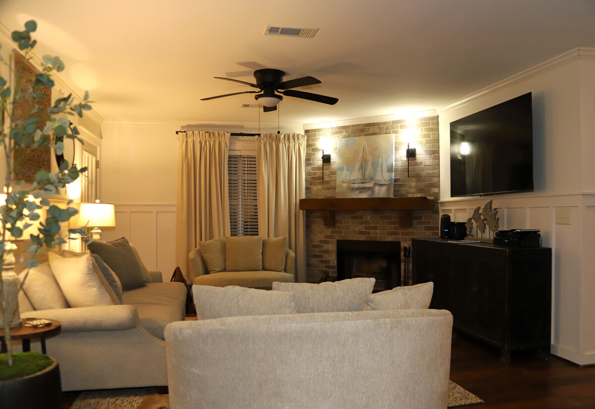 Ti diamo il benvenuto al Fern Lodge, un accogliente chalet 3 bd 2 ba nel bosco. Goditi un caffè sulla terrazza al mattino e grigliando con gli amici la sera, a soli 20 minuti dal centro di Auburn. Enormi piani superiori e inferiori, cucina completamente attrezzata e griglia a carbone. Può ospitare comodamente 6 persone con 2 letti queen-size, 2 letti singoli e 2 bagni completi. Immerso nella natura, compresi i gufi! Perfetto per matrimoni nelle vicine Auburn Oaks, Cypress Hills o Crooked Oaks.
