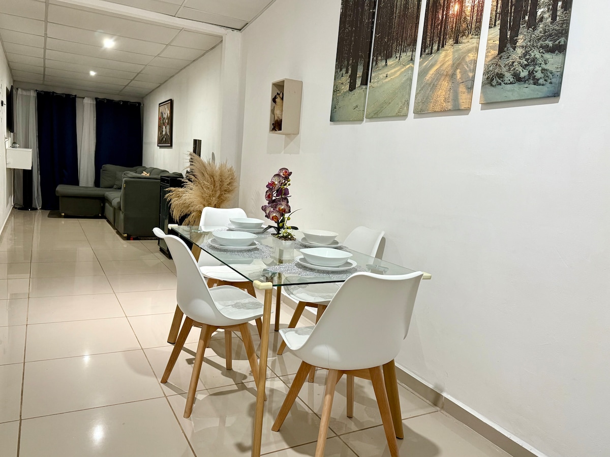 Goditi questo bellissimo, confortevole e centrale appartamento con 2 camere da letto in stile minimalista; situato a Santa Tecla, in una delle zone più esclusive del paese. Vicino a centri commerciali, ristoranti, farmacie e supermercati. Questo appartamento è ideale per un massimo di 3 persone e comprende 1 parcheggio interno, accesso a sentieri pedonali, parco e palestra presso l'interperie. Abbiamo una connessione internet a 100 Mbps, ideale per l'home office, una Smart TV con Netflix, una lavatrice e un'asciugatrice.