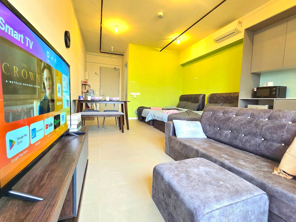 Un'unità speciale a Solstice @Cyberjaya. Una casa incredibile e accogliente ti farà sentire come a casa con servizi in stile resort: enormi piscine e palestra. Nizza 450sf della tua suite personale, con 1 camera da letto e 1 bagno, completa di tutte le attrezzature e gli utensili giornalieri per rilassarti su un letto comodo, rilassarti guardando la TV (TV box con molti canali) e navigare su Internet, e anche se vuoi cucinare un po' di leggerezza. Afferra il tuo cibo o gusta del cibo per soddisfare le tue esigenze