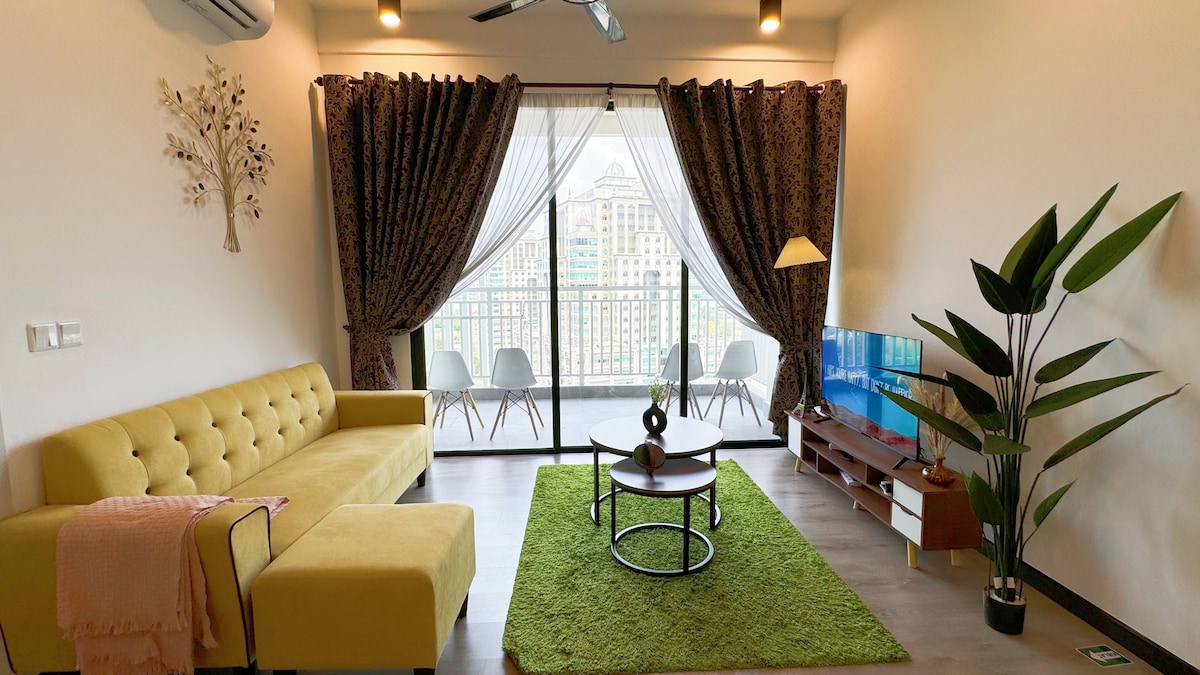 Cozy & Spacious Apartment with Modern Amenities. Our unit is on the 18th floor, offering beautiful city & mountain views of Puchong & accommodating up to 11 guests. Perfect for business travelers, family staycations & parents looking to bond with their little ones in a relaxing environment. Conveniently situated in the heart of Puchong, it provides easy access to restaurants, a cinema, convenience stores, hypermarkets, LRT, IOI Mall, Sunway Pyramid, Sunway Lagoon, Pavilion Bukit Jalil & more.