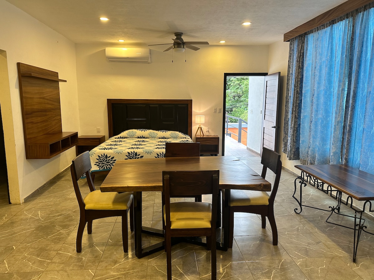 Appartamento con 1 camera, con 2 letti matrimoniali e 1 king size. Nello stesso spazio, colazione, cocienta e minibar. Aria condizionata. C'è una piccola terrazza. Sistemazione in posizione centrale. A soli 2 isolati e mezzo dalla piazza del paese. A 2 km dalle cascate Tamasopo e dal God 's Bridge. In una zona comune, una piscina e una steakhouse per una deliziosa carne asada.