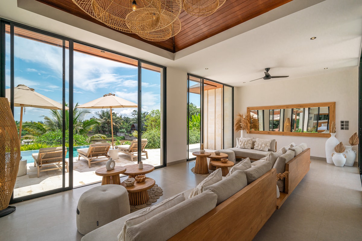 Set within an exclusive 8-villa estate, Prana Mansion overlooks a rare, uninterrupted jungle valley. Free from surrounding construction and noise, this brand-new three-level, 3-bed 3-bath features 4m ceilings, retractable glass walls, a sunken lounge with 85-inch TV, a 10m lap pool, and seamless indoor-outdoor living. The rooftop wellness level includes a sauna and cold shower for contrast therapy, supporting circulation, recovery, and deep relaxation.