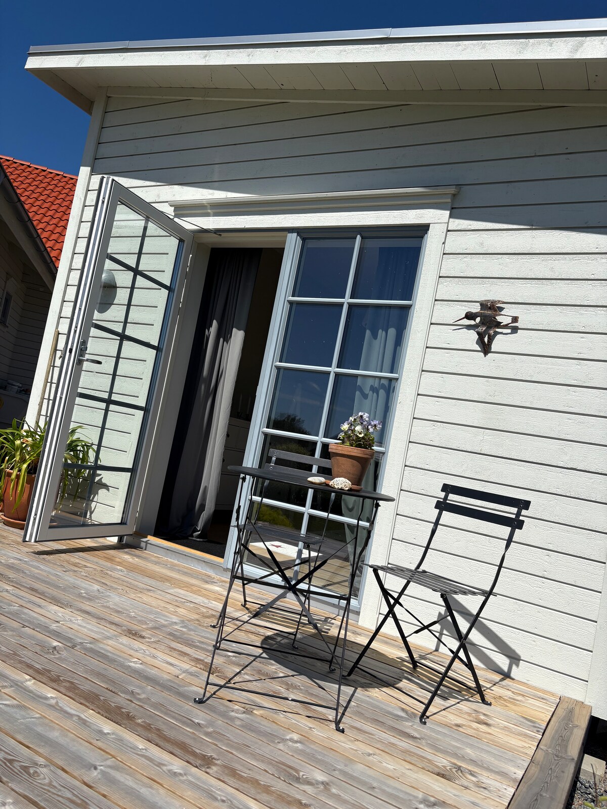 (NOTA: la v26-29 è affittata settimanalmente da domenica a domenica con l'aggiunta obbligatoria di pulizia a pagamento di 1000 SEK, ma con uno sconto del 10% settimanale sul totale dell'affitto). Appartamento per gli ospiti di nuova costruzione progettato da un architetto sul retro di una zona tranquilla con un ambiente incredibile. A pochi passi dalla spiaggia e a breve distanza in bicicletta dal centro di Varberg. BENVENUTI NELLA NOSTRA CASA🌸