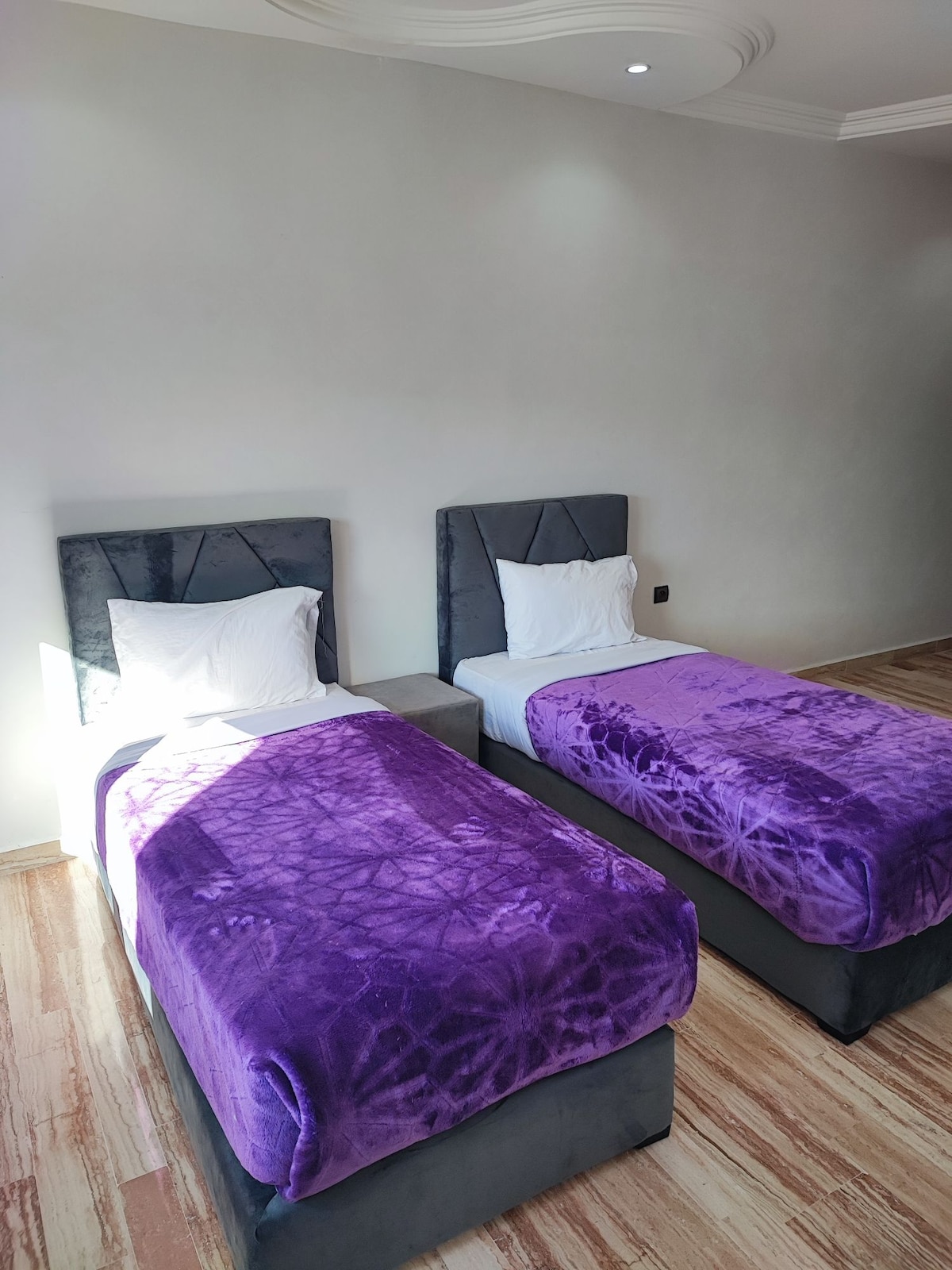 L'intero gruppo beneficerà di un facile accesso a tutti i siti e servizi da questo alloggio centrale, Appartamento accogliente e familiare si trova a Tangeri, mette a vostra disposizione un soggiorno tipicamente marocchino con Smart TV, 2 camere da letto, un bagno e il 2° un bagno separato, una cucina attrezzata, l'edificio è dotato di ascensore e di fronte a un parcheggio gratuito e connessione Wi-Fi gratuita .con doccia e articoli da bagno gratuiti
