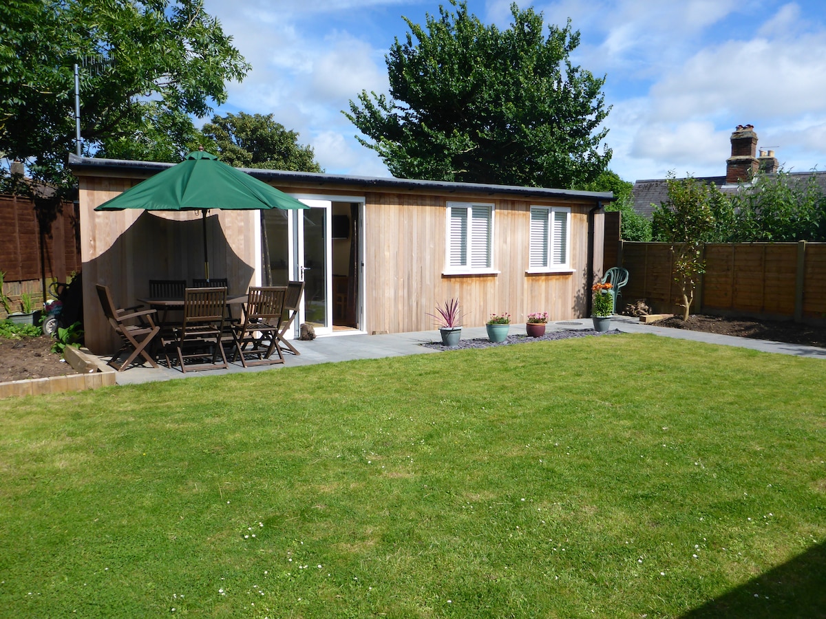 The lodge, which is in our garden, is in the beautiful village of Oving. Visit the beautiful West Wittering Beach (20 minutes drive) Chichester and Goodwood (10 minutes). It sleeps 4 (1 double and one single in the bedroom and a small double sofa bed in the living/kitchen space) but best suits 3-4. Groceries can be bought from Sainsbury's, 10 minutes by car.