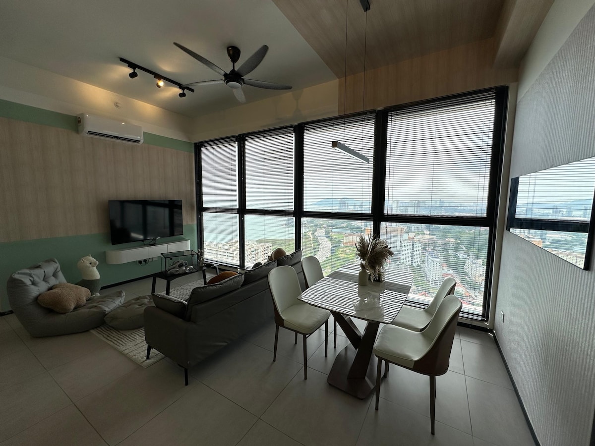WiFi gratuito, dotato di smart lock, scaldabagno, aria condizionata, forno a microonde e filtro per l'acqua che permette di bere acqua calda e fredda immediatamente. Inoltre, 2 posti auto gratuiti. Molto vicino a Karpal Singh, a 5 minuti da Georgetown, con una splendida vista sul mare e sulla città. Potrai vedere il ponte di Penang, la vista sul mare e Komtar da questa unità. Situato anche al 36 ° piano. Se hai bisogno di qualcosa, puoi chiacchierare con me, perché resto nelle vicinanze.