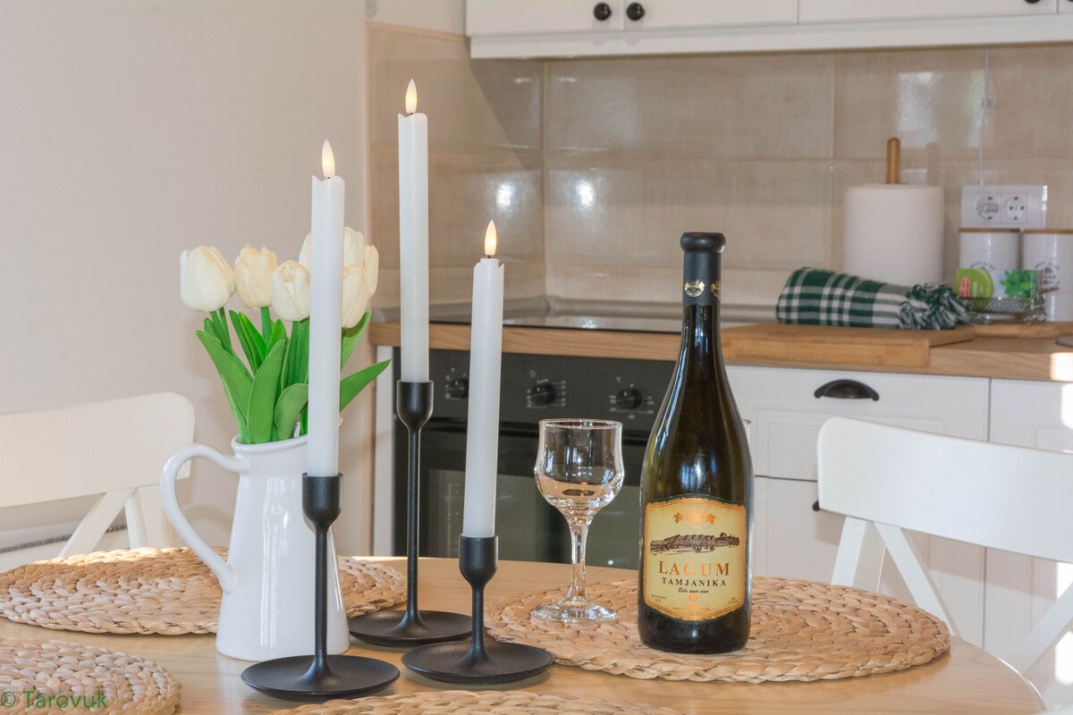 Inspired by the latest design trends in creating contemporary interiors, Villa Fuego is equipped to the smallest detail to meet all your needs. This is the perfect place for an intimate vacation that can accommodate up to 2 people. The area is 100 square meters, and it has one bedroom. Among the additional amenities, we highlight a comfortable terrace, underfloor heating, washing machine, dishwasher, refrigerator, as well as an espresso machine located in the kitchen.
