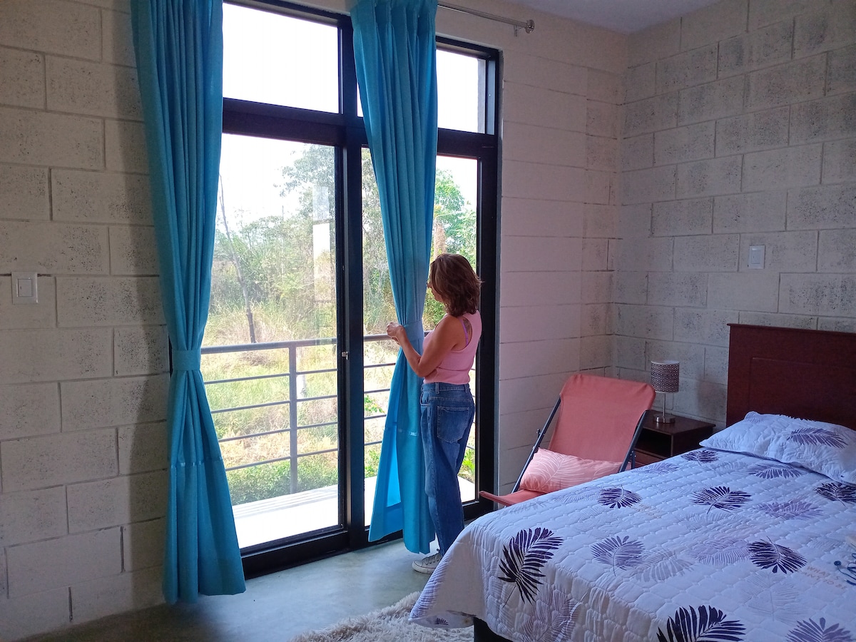 Habitación matrimonial con balcón vista al jardín
