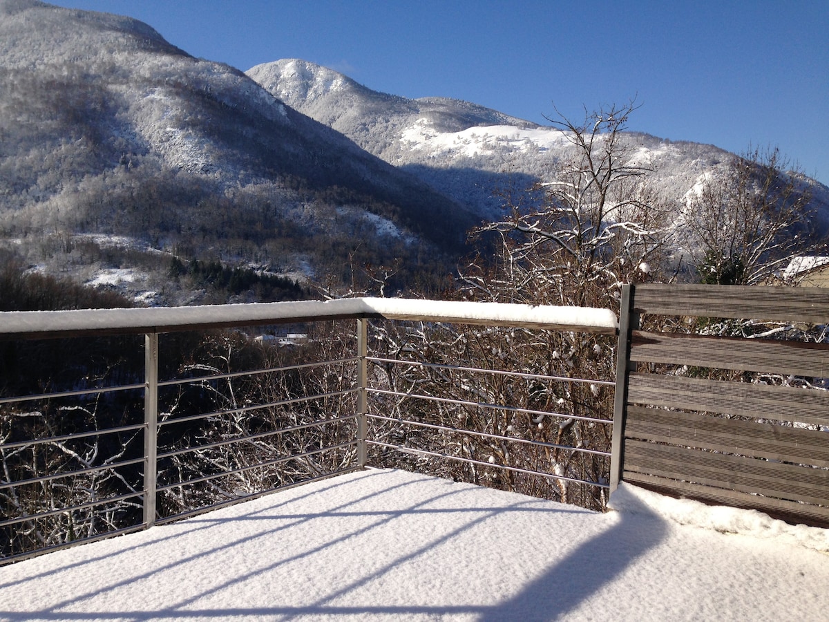 In una frazione di montagna, potrete godere di una vista privilegiata sul massiccio del Mont Valier e sul suo ghiacciaio. Questa casa con questi spazi esterni vi darà il tempo di vedere gli animali della fattoria biologica di pony, mucche Highlands e miele prodotto in loco. Molto spesso cervi, cervi, caprioli verranno a sorprendere le vostre colazioni e le vostre cene. Insomma un luogo confortevole,rilassante, per gli amanti della natura.