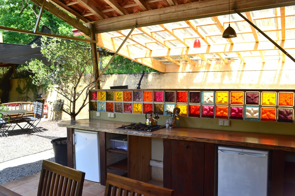 Ideale per un soggiorno "Out of Africa" locale, l'Ecolodge - tenda safari si trova a 30 metri, sopra l'abitazione principale e la piscina della proprietaria messa in acqua nel mese di giugno . Immerso all'ombra delle querce, l'alloggio è composto da una terrazza coperta (15m²), un'area salotto e colazione, 2 camere modulari (letti singoli/ letto matrimoniale), un blocco sanitario privato, un angolo cottura (fornello, lavandino) e un giardino privato con vista sul vallone.
