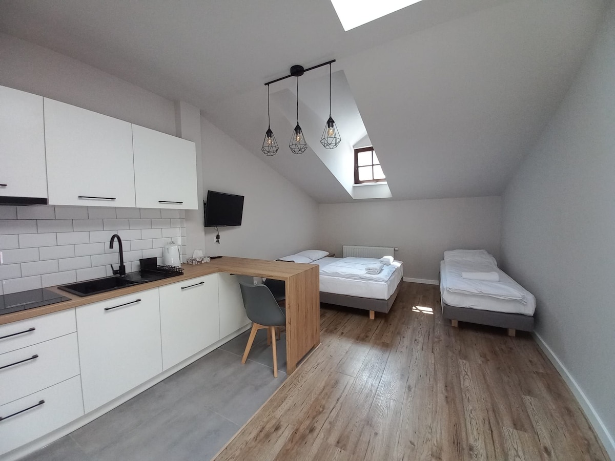 Goldhammer Studio è un moderno appartamento di 38 m² in una casa a schiera del 2024 restaurata. L'appartamento è completamente attrezzato e pronto a vivere. Perfetto per chi cerca comfort e funzionalità. Posizione: a soli 8 minuti a piedi dal mercato di Tarnów, nel cuore della città. Un'ottima base per esplorare Tarnów, con facile accesso a ristoranti, negozi e attrazioni turistiche. Moderno, confortevole ed elegante, tutto il necessario per il tuo viaggio!