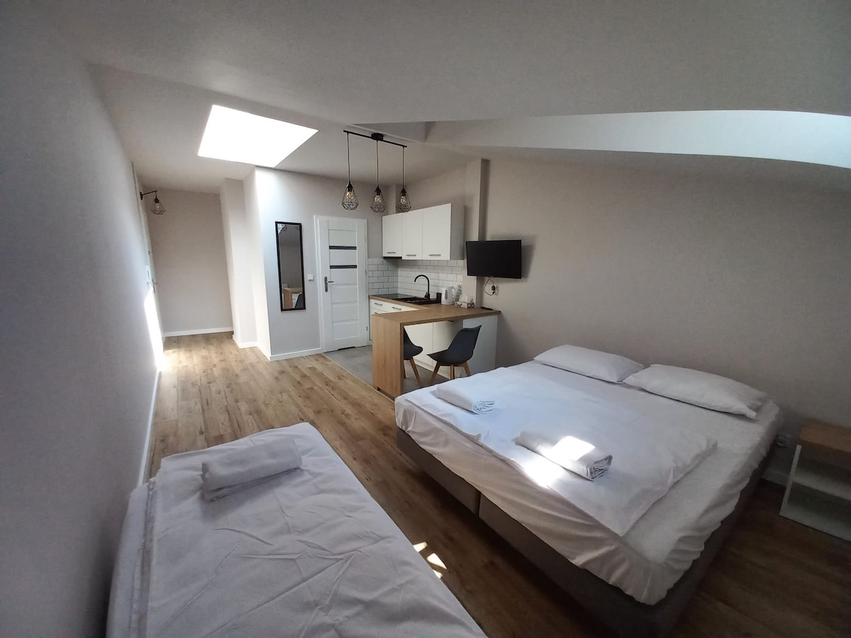 Nasz apartament to oaza spokoju w samym sercu miasta. Zlokalizowane w cichej dzielnicy, to miejsce łączy wygodę miejskiego życia z atmosferą spokoju. Mieszkanie jest nowoczesne i przestronne, urządzone w nowoczesnym stylu. W pełni wyposażona kuchnia zachęca do gotowania, a przytulny salon to doskonałe miejsce do relaksu. Bliskość centrum pozwala na łatwy dostęp do restauracji, sklepów i atrakcji kulturalnych. To idealne miejsce dla tych, którzy szukają komfortu i spokoju w samym sercu miasta.