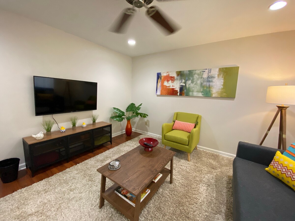 2 letti ristrutturati, 1 bagno. 1 letto ha una regina e l'altro ha un divano letto con letto estraibile. Due posti auto, soffitti a volta, quarzo bianco in cucina e sul bancone, cortile laterale privato, elettrodomestici nuovi (lavatrice, frigorifero, piano cottura, forno a microonde, smaltimento), appartamento con lavatrice e asciugatrice, smart TV, wifi e divano letto, in una strada tranquilla a 1 isolato da Magnolia Avenue, nel quartiere storico di Fairmount, a pochi minuti da TCU, dal centro, dal quartiere culturale, da West 7th Street, dallo Stockyards, dal fiume Trinity e dai suoi sentieri, dallo zoo di Fort Worth, ecc., con facile accesso alle autostrade. L'appartamento è per non fumatori e non ammette animali domestici.