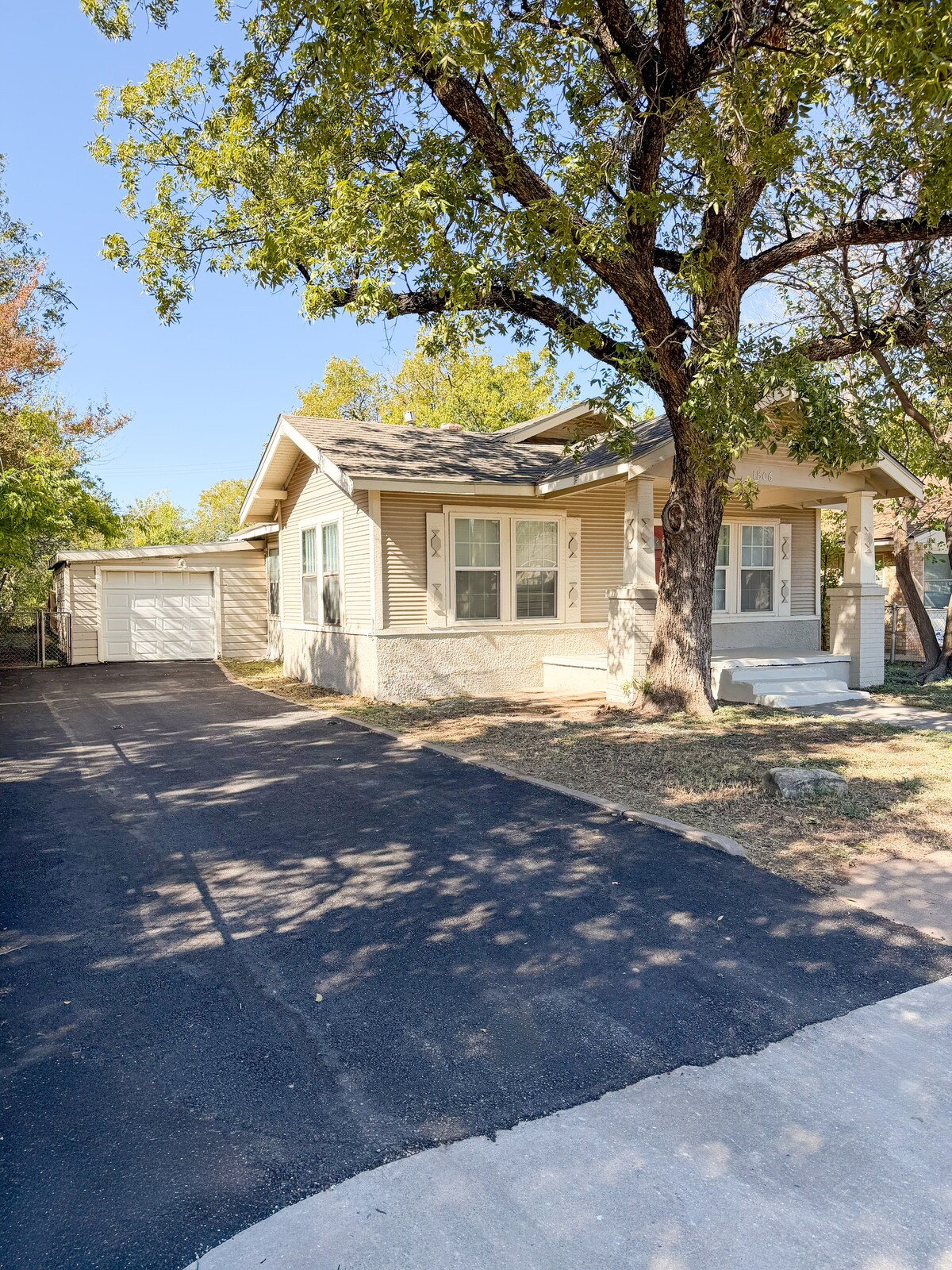 Oma's House is a peaceful retreat with historic charm, centrally located, and minutes away from the Abilene Convention Center, Downtown, SODA District, Abilene Christian University, and Hendricks Hospital North. The property features a large fenced in back yard, gazebo with outdoor seating and basketball court. Balls and chalk are provided for an impromptu game of hopscotch or four square. The kitchen is fully equipped with dishes, pots, pans and cooking utensils, as well as basic spices.