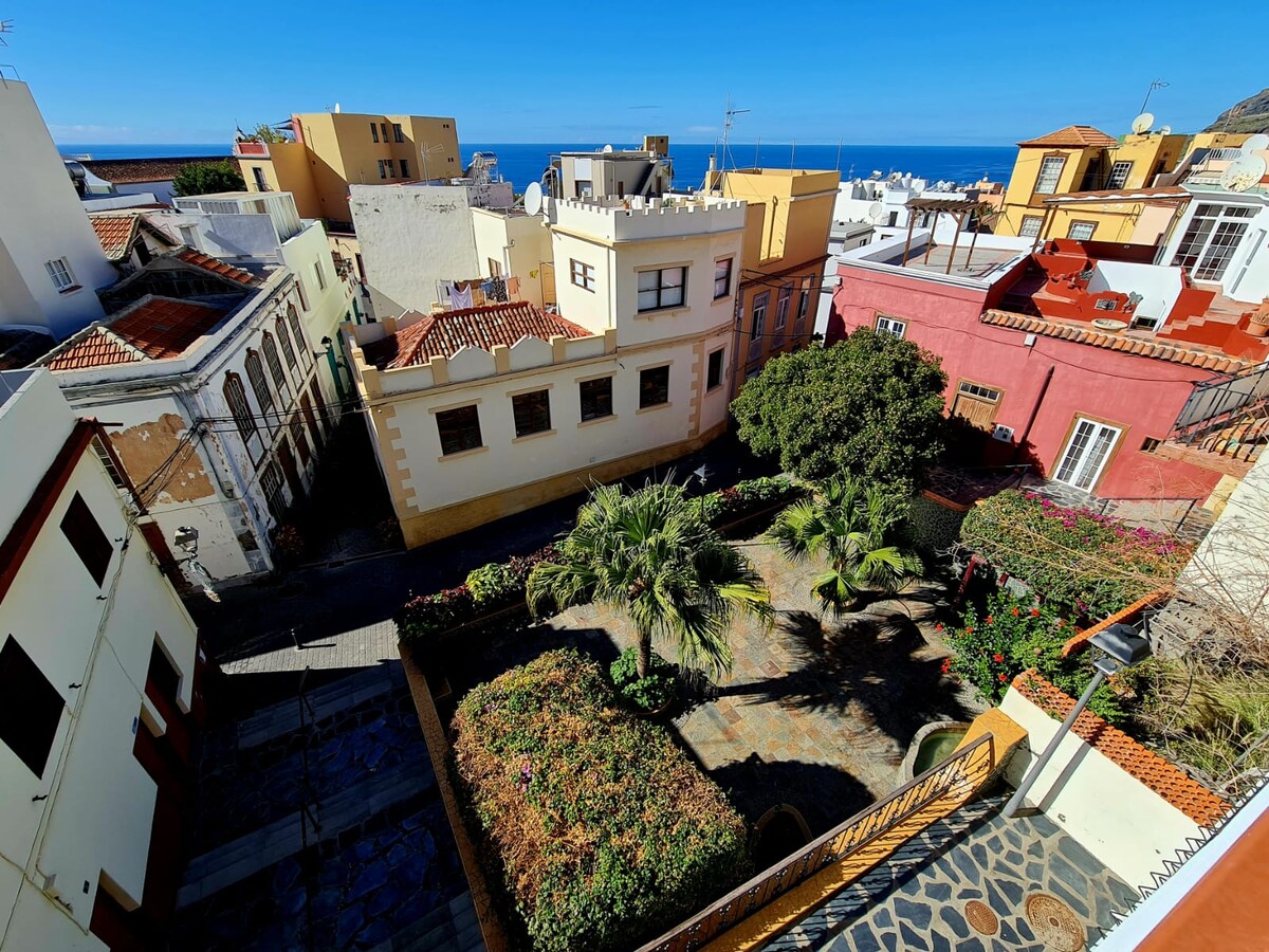 La casa di Yeya. Una bella casa completamente ristrutturata dai suoi padroni di casa Francis e Mary. La casa, situata in un luogo privilegiato della capitale dell'isola, vi permetterà di godere di un meraviglioso panorama dalla sua accogliente terrazza, contemplando il mare, il centro storico della città e le isole di Tenerife e La Gomera. Quando arriverai al centro della città, ci vorranno solo 10 minuti a piedi e potrai goderti le sue splendide strade. VV-38-5-0001739