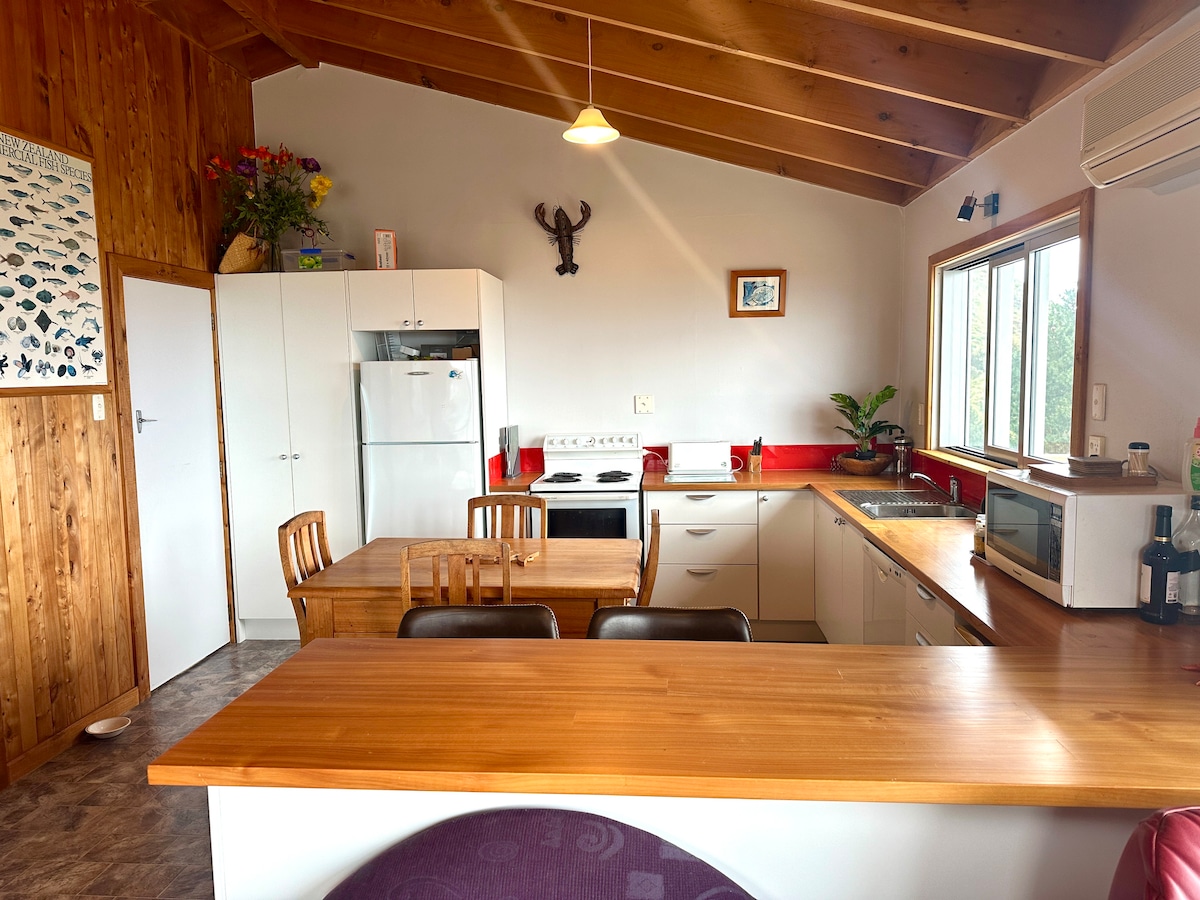 Rilassati e ricaricati in questo spazio unico e tranquillo. Viste mozzafiato, canto degli uccelli nativi, escursioni al tramonto e spettacolo del cielo notturno comodamente dal tuo letto matrimoniale grande. Resta a casa, esplora i dintorni naturali o fai un bel giro in auto fino alla cittadina di Martinborough, visita i vigneti locali, raggiungi in auto la costa di Tora o visita il faro di Ngawi. Il Blue Earth Vineyard and Olive Grove si trova a pochi passi dalla baita; prenotazione obbligatoria.
