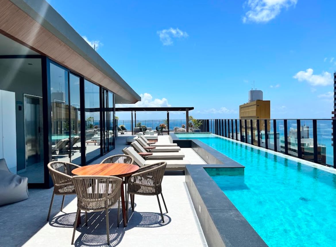Studio c/ Rooftop e piscina vista Mar 1km da praia