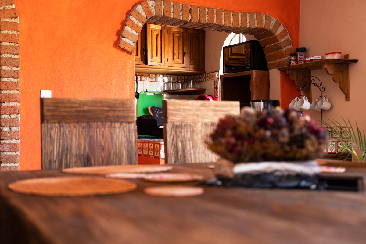 Situato nel centro storico di Guanajuato, vivi un meraviglioso soggiorno in un appartamento confortevole e incantevole. Piccolo giardino con tiglio da frutto aperto tutto l'anno. Ecologicamente, scaldabagni solari e una cisterna per l'acqua piovana. Terrazza con vista mozzafiato, divano letto e amaca. A pochi minuti dall'Università di G, Plaza del Baratillo, Teatro Juarez e Jardín Union. Una rarità a Guanajuato: camere da letto climatizzate! Gli ospiti devono sentirsi a proprio agio a camminare, a piedi in salita e a fare le scale!