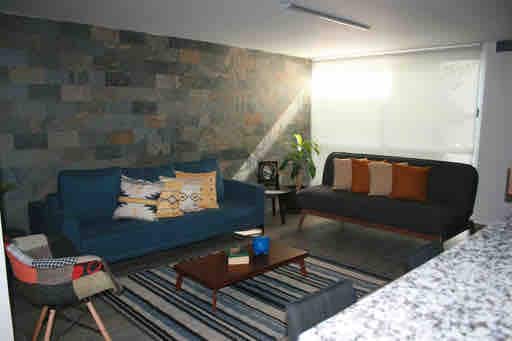 Departamento con excelente ubicación a unos pasos de la Hda Ojo de Agua y plazas comerciales, a 20 minutos de AIFA 40 De Pirámides de Teotihuacan. 1 recamara con baño completo y medio baño ubicado en planta baja Elegantes acabados de luz natural y baños de mármol. Jardín y cocina equipada con estufa, refrigerador, TV, etc. Internet, CCTV y acceso a través de interfone para mayor seguridad. 1 espacio de estacionamiento dentro del edificio con acceso a zaguán a través de control remoto.