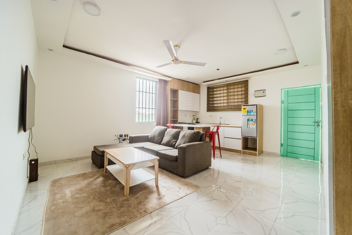Rilassati in questo elegante appartamento tranquillo con il tuo partner. Vicino alla spiaggia di Sakumono e vicino al Junction Mall.