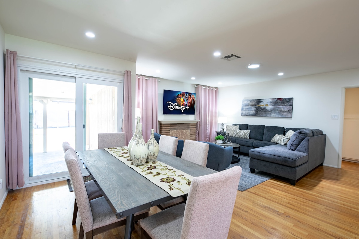 Entra e lasciati accogliere dall'energia rilassata della California del Sud: questa elegante casa con 3 camere da letto è perfetta per i viaggiatori che desiderano sia il relax che un po' di stile. Sorseggia un caffè appena preparato, lasciati ispirare nella sala da musica o accendi il barbecue per una serata sotto le luci. Trascorri le tue giornate esplorando il Los Angeles County Arboretum, facendo escursioni vicino alla diga di Santa Fe o andando sulle montagne russe agli Universal Studios, tutti raggiungibili in auto. Prenota il tuo soggiorno oggi stesso!