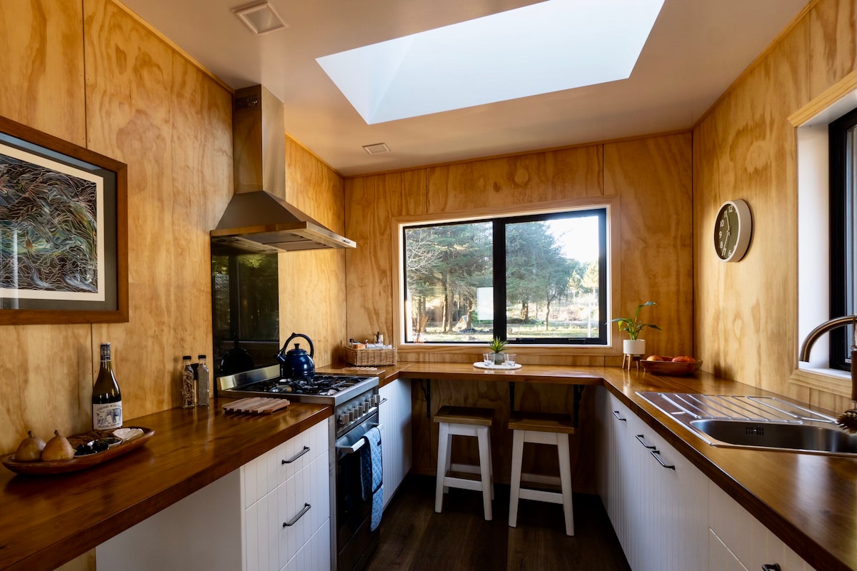 Ottimo posto per rilassarsi in uno spazio tranquillo e appartato. Splendida foresta nativa lussureggiante e uno splendido sfondo montano. Vista sulle pianure di Canterbury dalla terrazza, dal salotto e dalla camera da letto. Vasca da bagno all'aperto riscaldata a legna.