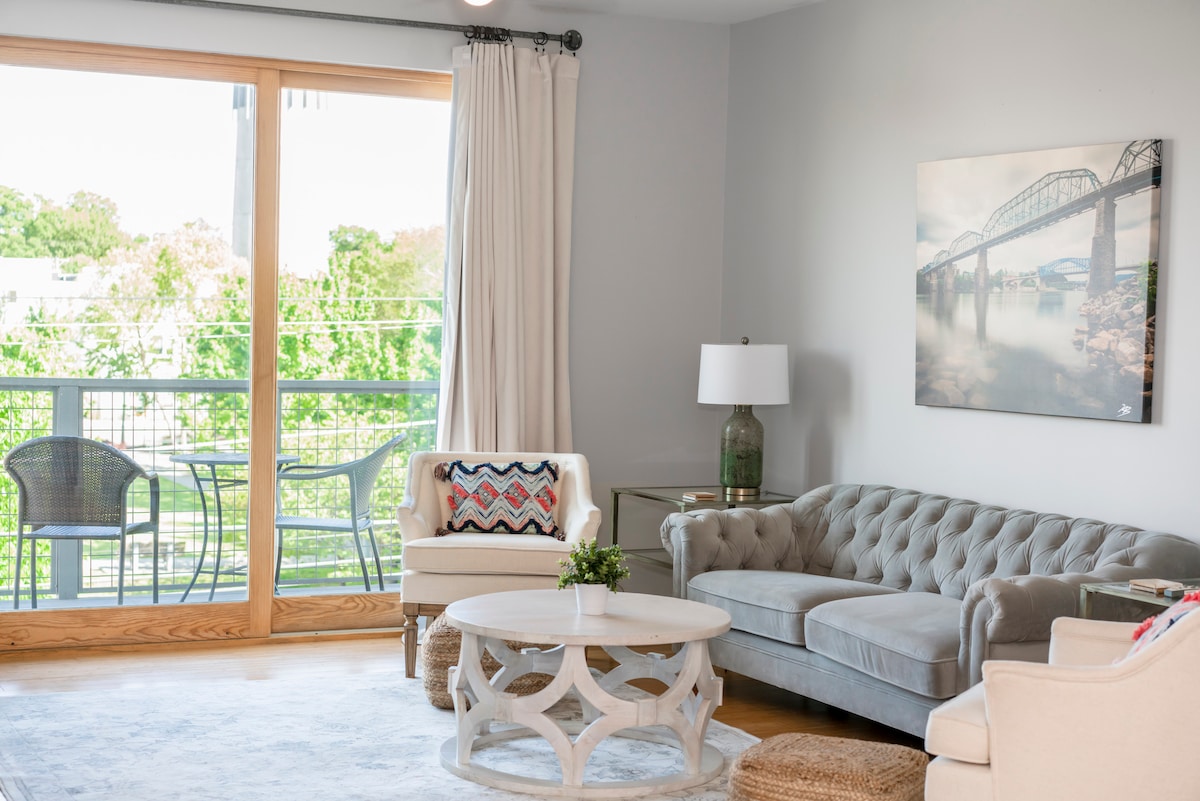 Ti diamo il benvenuto nel centro di Chattanooga! Questo elegante appartamento offre tutti i comfort di casa e la sensazione di un ⭐️ hotel a cinque stelle! Troverai un letto king-size per goderti il meritato riposo, internet GIG speed (il più veloce degli Stati Uniti), uno spazio di lavoro dedicato e una cucina completa con caffè illimitato e snack bar per prepararti alla giornata. Abbiamo già detto che sei a pochi passi da tutti i punti di interesse locali che la nostra affascinante città ha da offrire? Prenota ora: ci piacerebbe molto averti tra noi!