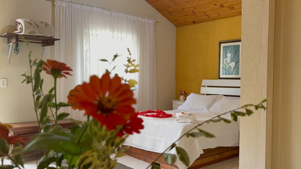 Cottage affascinante ed esclusivo nella Serra Carioca! Il "Cigno Nero" è stato pensato e preparato per offrire ogni comfort! Letto matrimoniale, biancheria da letto 100% cotone, 2 cuscini in piuma d'oca e 2 in lattice naturale, divano, aria condizionata caldo/freddo, armadio, specchio a figura intera, asciugacapelli, scaldasalviette, doccia a gas, acqua calda in tutti i rubinetti... Cucina completa con tutti gli utensili, tavolo da pranzo/lavoro. Non abbiamo un fornello. Area esterna con piscina e campo. Tavolo da picnic esclusivo della capanna!