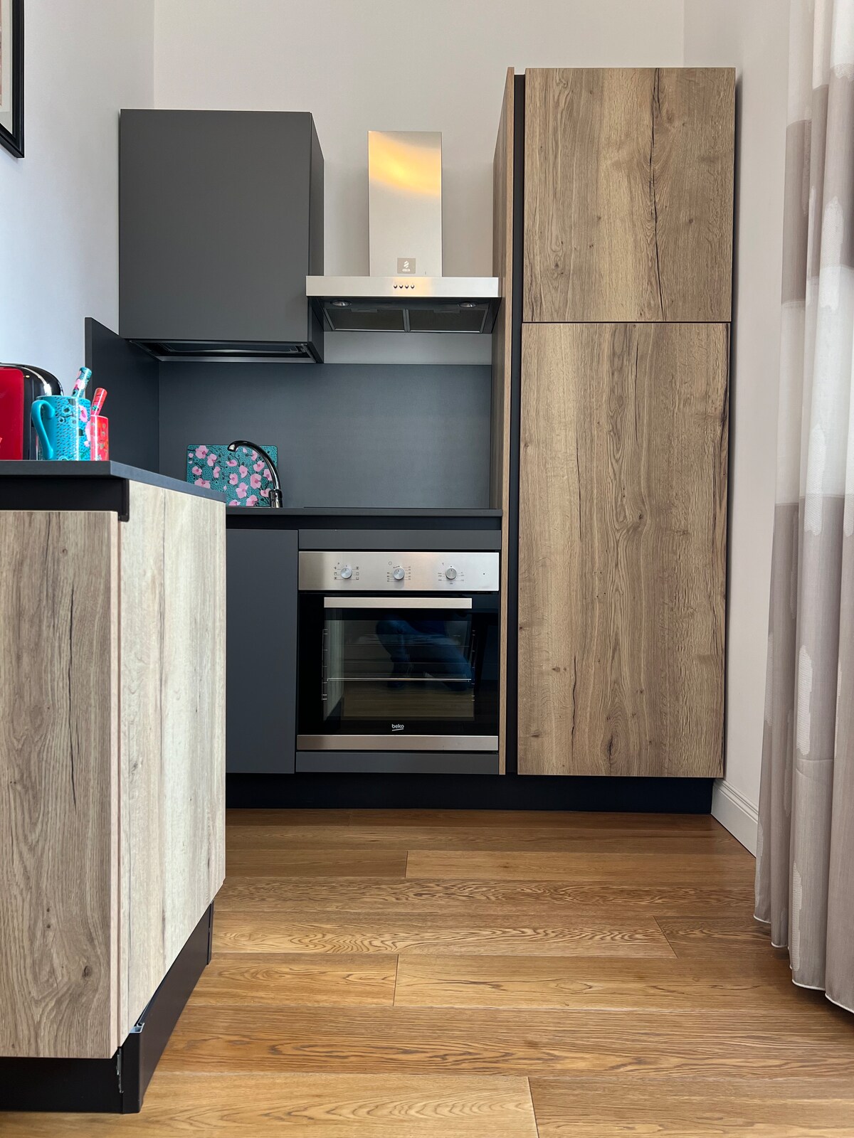 Spazioso e accogliente in posizione strategica nel cuore di Roma. Oasi di tranquillità e luminosità in mezzo all'energia vibrante della città. Composto da una camera matrimoniale con bagno in camera e un ampio soggiorno collegato a una piccola ma ben attrezzata cucina, che si affaccia su un balconcino. Dispone di due bagni, uno con doccia e l'altro con una piccola vasca. Lo spazio, moderno ed essenziale, è dotato di riscaldamento, aria condizionata, lavatrice, lavapiatti e connessione fibra.
