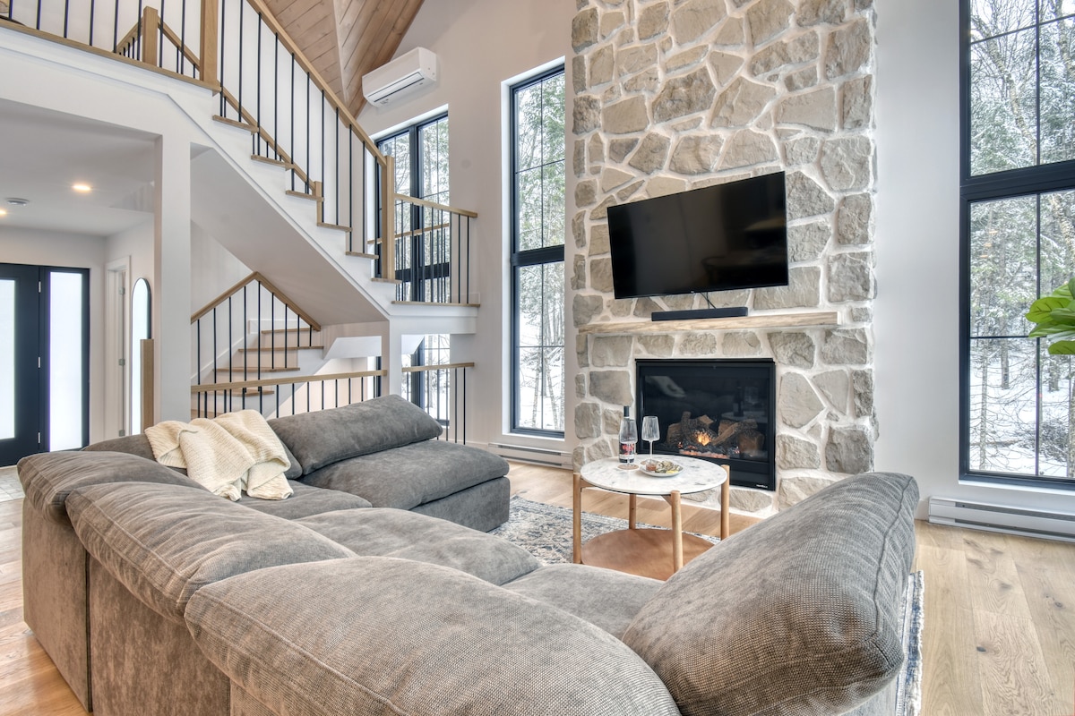 Chalet moderno di ispirazione autoctona immerso nella natura, con vista sulle montagne. Godetevi la spa all'aperto aperta tutto l'anno, il camino a legna e il barbecue. Cucina completa con macchina da caffè Keurig (1 caffè a persona al giorno). Tre camere da letto (1 King, 2 Queen di cui una nel soppalco). Su un terreno di 5 acri, questo luogo unisce comfort e fascino del legno, perfetto per rigenerarsi. N. reg.: 309551 exp: 2026-06-08.