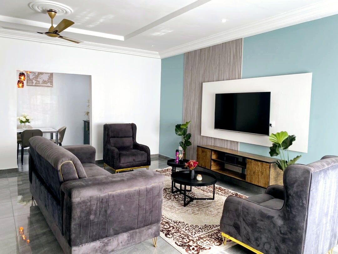 Experience comfort and luxury in this new, family-friendly, gated apartment in Spintex, Accra. With a standby generator, Wi-Fi, free parking, security fence, and 24/7 CCTV, it’s perfect for discerning travelers. The apartment is in a residential area, only a short drive from: Grocery shops + market A Gym Restaurants (People Social Eatery, Dragon Room) Orca Mall, Palace Mall LEKMA Hospital (10min) Airport (15min) Labadi beach (15min) East legon (10min) HoneySuckle Lounge Spintex (8min)
