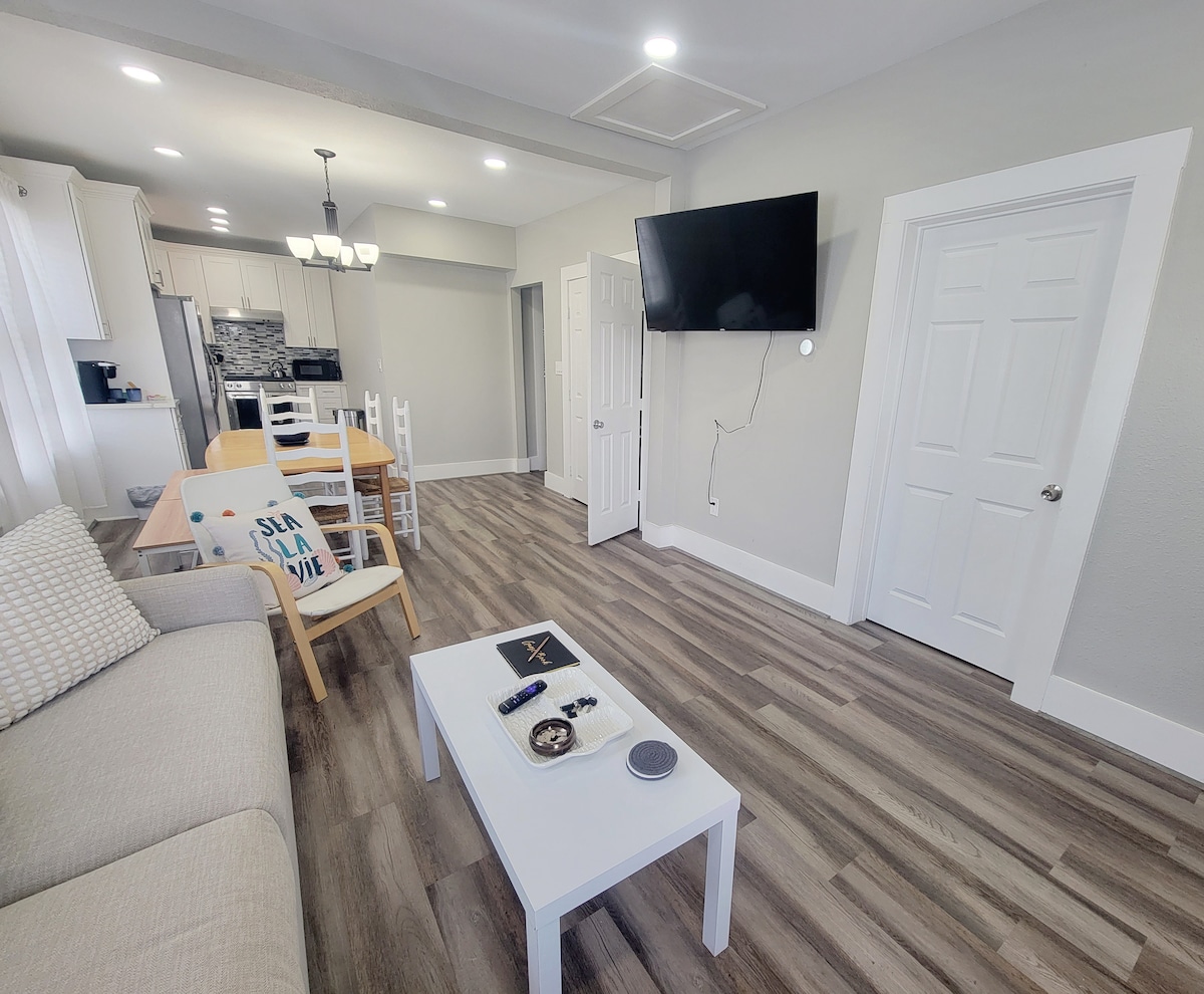 Ti invito a rilassarti in questo tranquillo e accogliente bungalow sulla spiaggia moderno. Ogni dettaglio pensato per il tuo riposo e relax in vacanza e divertimento. Un comodo letto queen-size ti dà il benvenuto per goderti una tranquilla notte di sonno al Lookout. Questa minicasa ha un angolo cottura che ha un frigorifero, un forno a microonde e un produttore di bevande. All'arrivo ti fornisco caffè, tè e qualche snack. Il bungalow si trova sul retro della proprietà, al secondo piano di una casa sul retro.