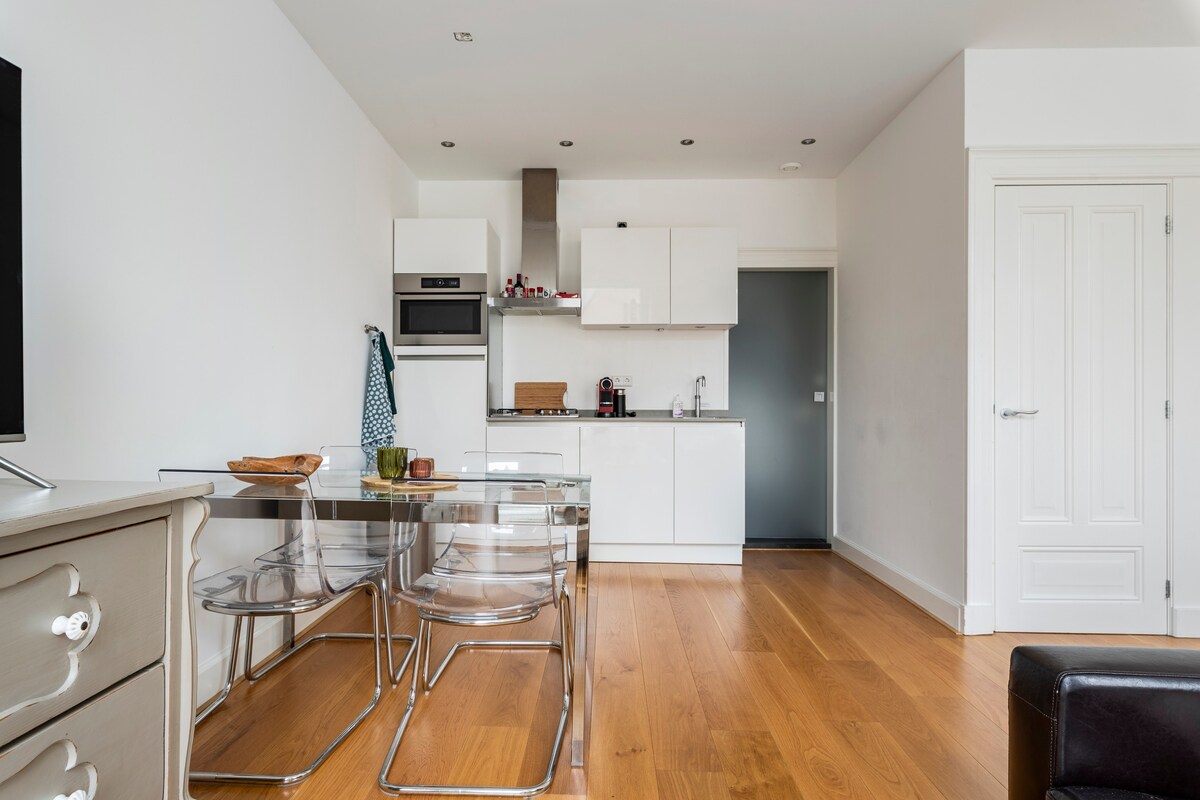 Appartamento recentemente ristrutturato all'ultimo piano di una storica casa di città nel centro storico di Haarlem, a soli 3 minuti a piedi dalla stazione ferroviaria e dal centro città. Anche la spiaggia di Zandvoort (9 minuti in treno) e Amsterdam (18 minuti in treno) sono molto vicine, il che rende questo appartamento il luogo perfetto per il tuo viaggio in città ad Haarlem, ad Amsterdam o in spiaggia.