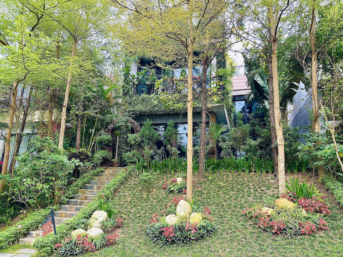 Situato nel cuore di Lang Hao Huc, circondato da numerose rose, alberi da frutto tropicali e verdure. Piccoli ruscelli primaverili nelle vicinanze con 247 suoni rilassanti è un vantaggio. Piscina per 4 stagioni con vista mozzafiato, spazio di lavoro di 150m2 con vista panoramica sulla valle e sul lago Nui Coc. I piatti locali con ingredienti da tavola dalla fattoria sono sempre pronti per essere ordinati. Non è consentito fumare, adatto agli animali domestici. Bici, SUP e tour giornalieri sono forniti a spese aggiuntive.