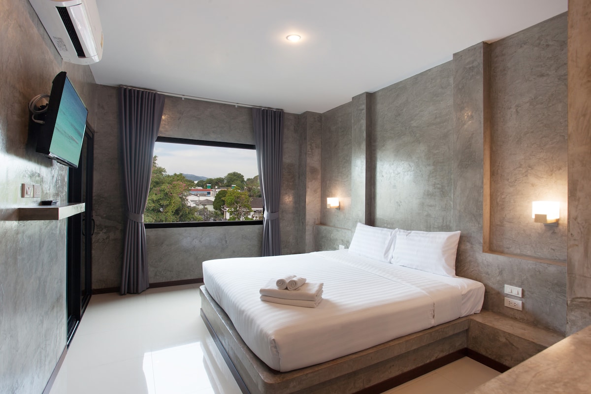 Questa è una camera con letto matrimoniale del Cloister Inn, con una superficie di circa 24 metri quadrati, che combina stile tailandese e moderno, quasi tutte le camere si affacciano sulla piscina, alcune delle quali sono proprio a bordo piscina. Abbiamo un totale di 9 camere di questo tipo. La camera è adatta per 2 persone, se si aggiunge una terza persona è necessario aggiungere un costo per una persona. Questa è una pensione in stile Lanna con giardino che abbiamo costruito da soli, con un mix di cemento moderno, che ha sia lo stile etnico naturale originale degli edifici thailandesi tradizionali, sia un design funzionale moderno e semplice, con una piccola piscina circondata da grandi alberi. L'hotel si trova nella zona residenziale degli abitanti originari della città vecchia di Chiang Mai, molto tranquilla. La posizione è naturalmente molto vantaggiosa, a soli 3 minuti a piedi dalla Porta di Tapa e a solo 1 minuto a piedi dalla via pedonale della domenica. A 15 minuti di auto dall'aeroporto. Qui potrai godere di un bellissimo cortile soleggiato, camere confortevoli e viaggiare a tuo piacimento.