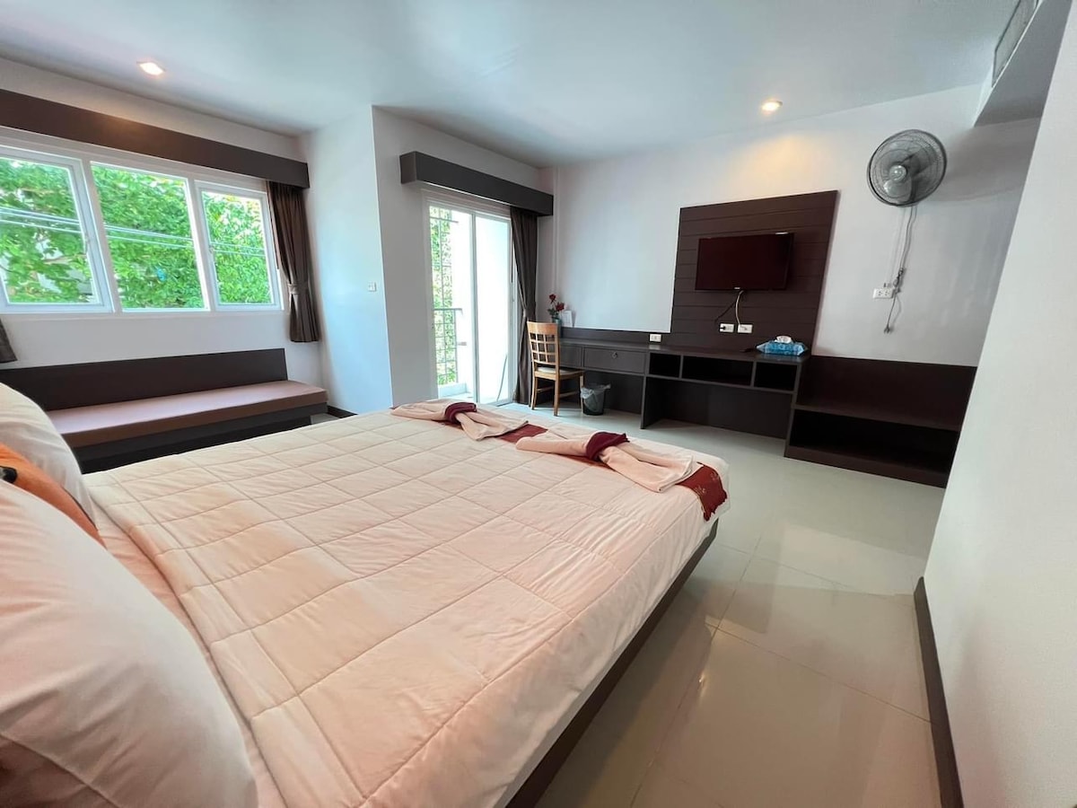 Camera doppia con bagno in comune in ostello. Niece Hostel è situato nel cuore di Choeng Thale. Offriamo camere private in stile bagno e doccia in comune. camera con aria condizionata, wifi gratuito. Dotato di un salotto condiviso, una terrazza. Local fresh market , 7-11 , CP Fresh mart ,Pharmacy and many local shops/restaurants are all located opposite our hostel. Choeng Thale Provincial Police station a soli 500 metri. Il supermercato si trova a 5 minuti a piedi dall'ostello.