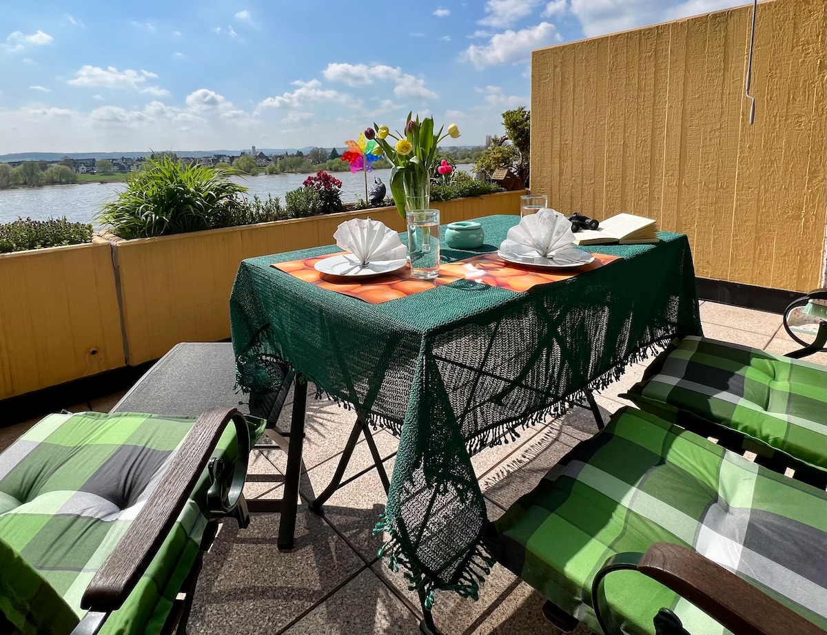 Unsere barrierefreie Wohnung liegt in Urmitz und unmittelbar am Rhein. Das Apartment in ruhiger Lage ist 70 qm groß und hat im Wohnzimmer eine Glasfassade zum Rhein hin. Sowohl über das Wohnzimmer als auch das Schlafzimmer können Sie auf die große Terrasse. Machen Sie es sich hier gemütlich und genießen den Ausblick. Die Küche ist neu und bietet Ihnen alles, was Sie brauchen. Kaffee steht unbegrenzt zur Verfügung.