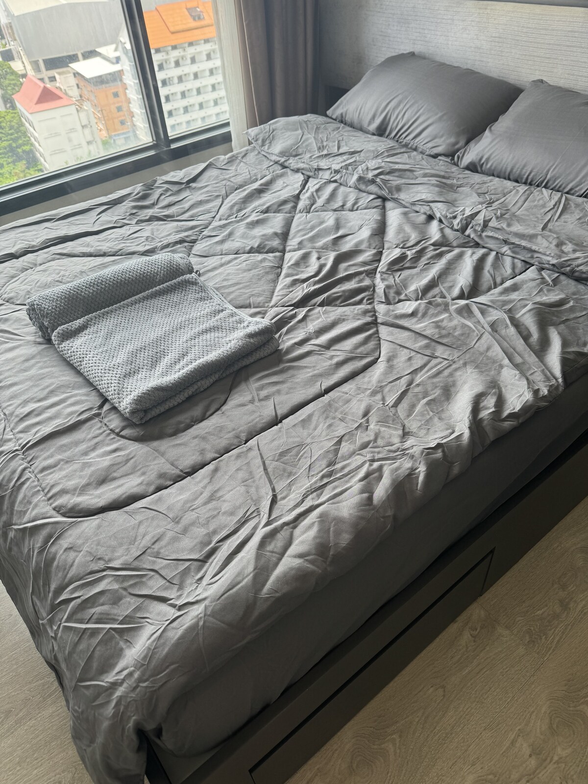 Benvenuti nel vostro rifugio appena ristrutturato nel cuore di Pattaya! Questo moderno appartamento con 1 camera da letto è stato appena ristrutturato con un design fresco e contemporaneo, offrendo comfort a livello di hotel con la privacy del tuo spazio. Perfetto per coppie, nomadi digitali o viaggiatori in vacanza che desiderano un soggiorno luminoso, pulito e tranquillo a pochi passi dalla spiaggia. Soggiorno open space con smart TV e divano Cucina completamente attrezzata (forno a microonde, frigorifero, bollitore, utensili).