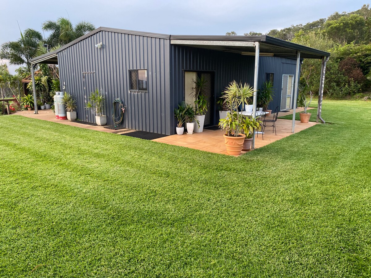 Questo chalet appartato è il rifugio perfetto per una persona sola, una coppia o una famiglia che cerca di "staccare" dalla routine quotidiana. C'è un'area campeggio erbosa proprio accanto alla baita, dove i bambini possono dormire in tenda, mentre mamma e papà possono rilassarsi comodamente nella baita Karingal. I bambini soggiornano gratuitamente se porti le tue tende. Siamo a 5 minuti in auto dal villaggio turistico e di pescatori di Yeppoon. Ci troviamo a 190 metri sopra il livello del mare e vantiamo una vista a nord verso i Monti Byfield e a est sulle Isole Keppel.
