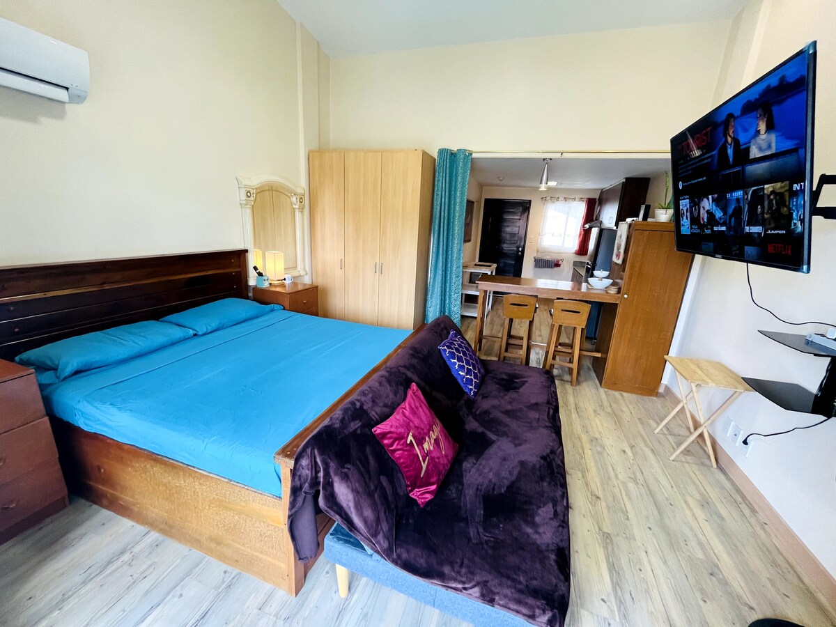 This newly renovated studio condo is located inside Subic Bay Freeport Zone. The main floor has multiple stores and restaurants. It is only a few minutes walk to Harbor Point Mall, a couple of blocks away from Subic Bay Boardwalk, Royal duty free and many more! This condo features: 24/7 security 1 Queen bed 1 full size sofa bed 1 single size floor foam mattress Towels Dish soap Hotel grade shampoo/cond/bodywash Smart LED 4k TV 200 mbps wifi Hot shower Free parking Full kitchen/ can cook