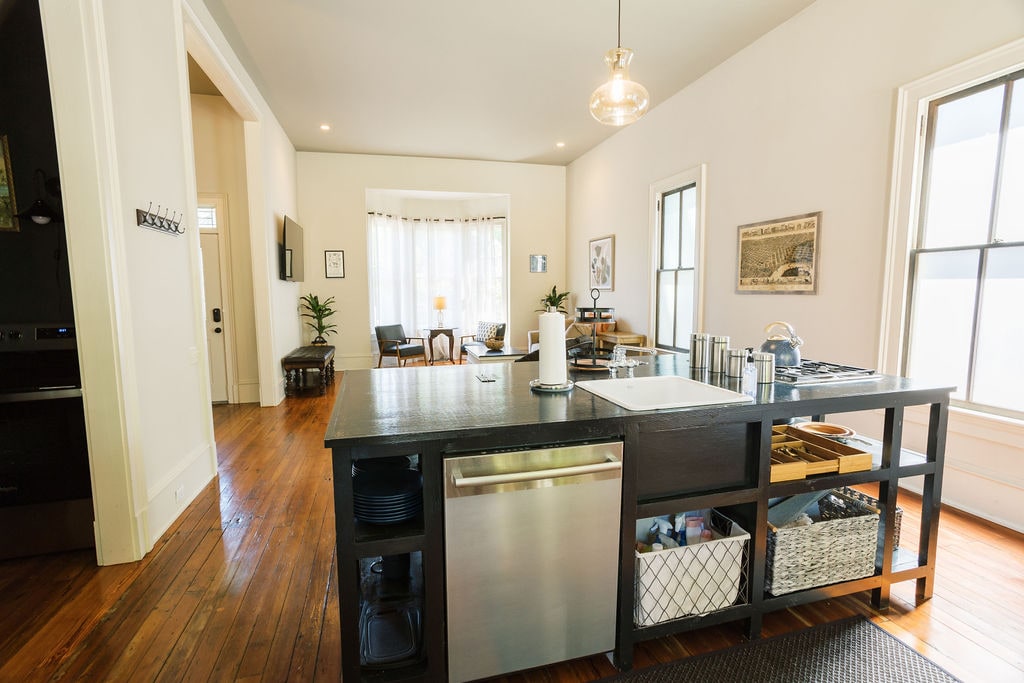 Situato in posizione⛲ centrale nel quartiere più antico di Montgomery. Soffitti di❇️ 3,65 metri, pavimenti in legno di oltre 150 anni, elettrodomestici da cucina gourmet, bagni di lusso, materassi ibridi da 35,56 cm, TV in ogni stanza. 🚶♂️➡️ Incantevole quartiere pedonale pieno di voci di bambini durante il giorno e tranquillo di notte. A 🏙️ 5 minuti dal centro, MAFB, EJI, Legacy Museum, I65, I85 e MPAC.